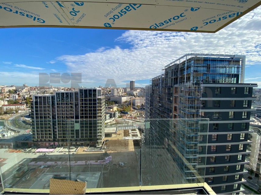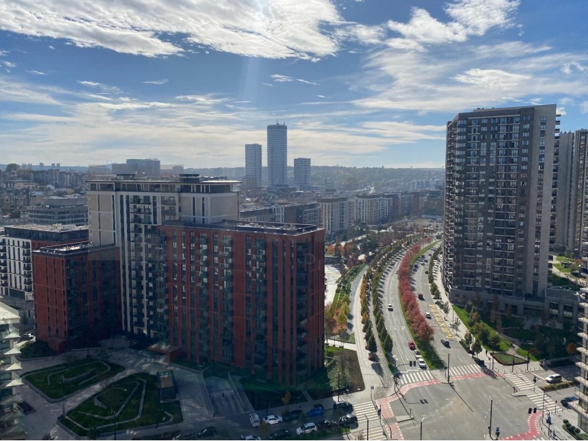 Stan se nalazi na 16.spratu i sastoji se od ulaznog hodnika, prostrane dnevne sobe sa kuhinjom i trpezarijom, dve spavaće sobe od kojih je jedna master sa sopstvenim kupatilom, dodatnog kupatila, vešernice i terase.