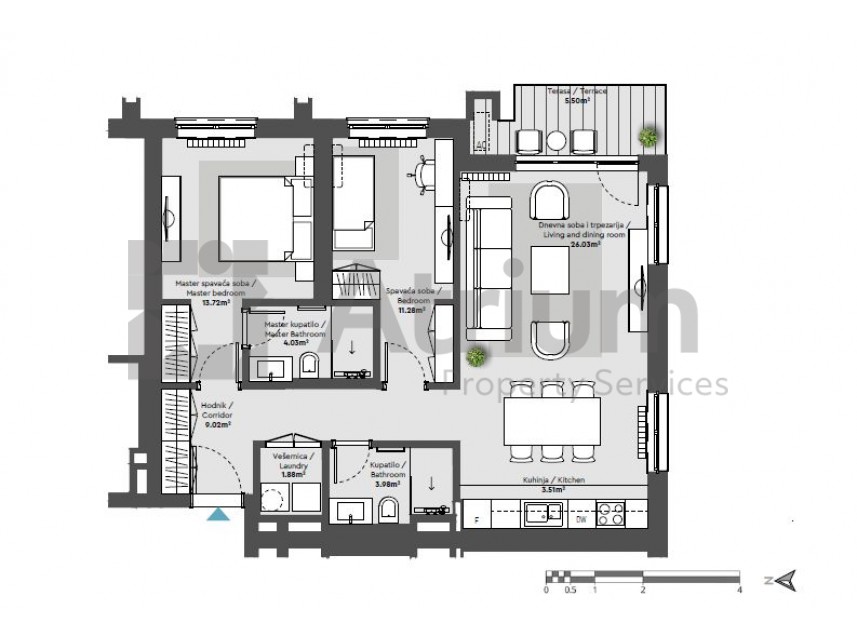 Zahvaljujući dvostranoj orijentaciji, stan je izuzetno svetao i prijatan tokom celog dana.