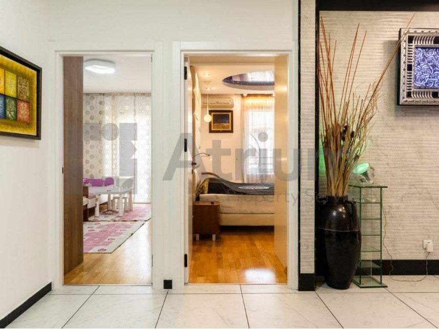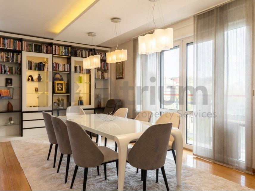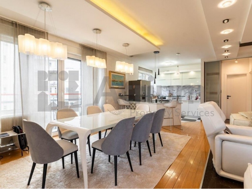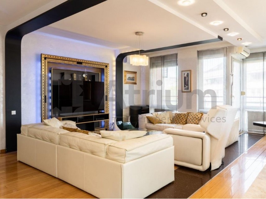 A three-bedroom apartment with a total area of 150 m² is available for rent, located on the 4th floor in New Belgrade. This spacious and bright home exudes elegance and comfort, making it ideal for family living.